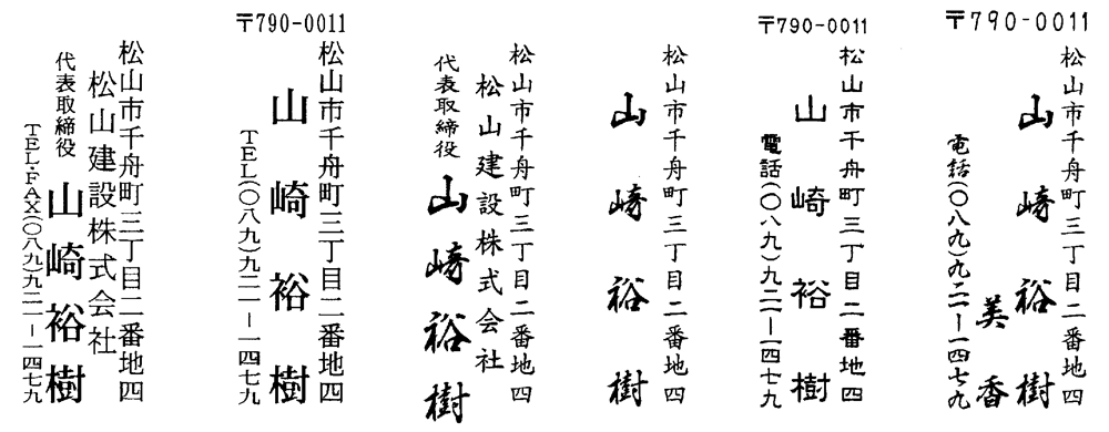 氏名判、住所判、枠物、ロゴ、組み合わせゴム印、データー印等できます。